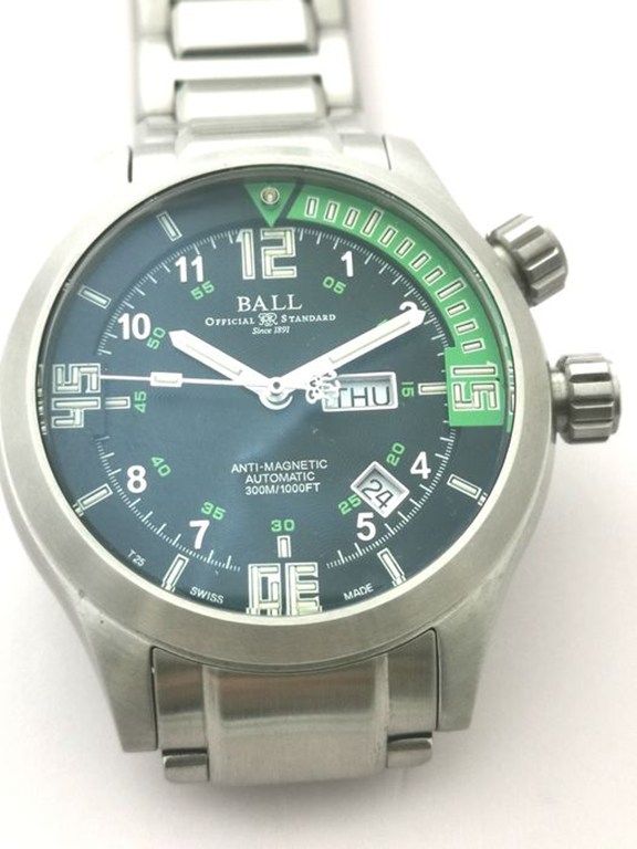 Caseback: geschroefde roestvrijstalen solide achterkant. Met bal gesigneerd