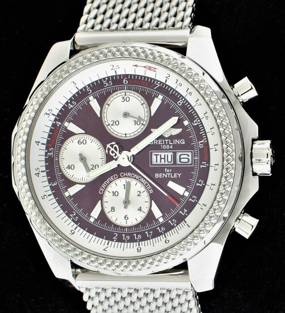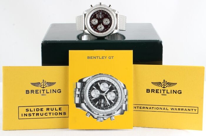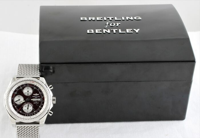 Breitling voor Bentley GT referentie A13362. De relatie tussen Breitling en Bentley gaat terug tot 2002, toen Bentley Breitling de opdracht gaf om een ingebouwde klok te creëren die de ongeëvenaarde luxe, weergaloze kwaliteit en buitengewone prestaties van de Contiental GT zou weerspiegelen.