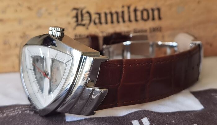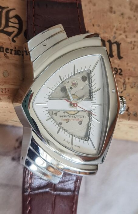 Het horloge is van de eerste versie van het Ventura H245150-model, op de markt gebracht aan het einde van de jaren 90, een heruitgave van het horloge gedragen door Elvis Presley en dat hij droeg in de film "Blue Hawaii" uit 1961.
