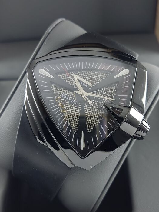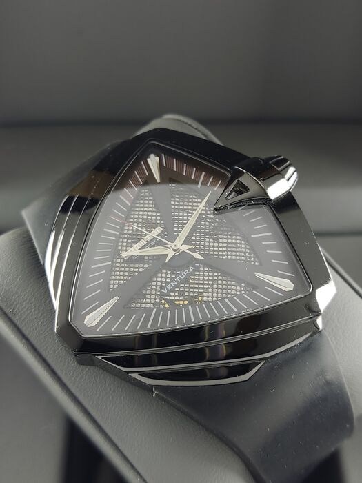 De sluiting: roestvrij staal zwart, originele Hamilton