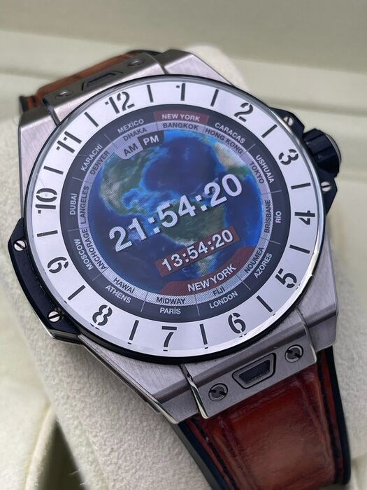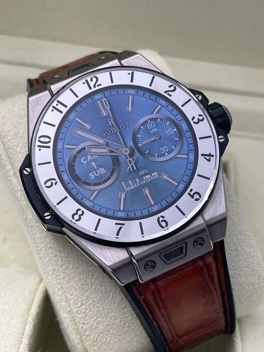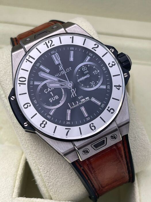 Gesatineerd titanium met zwarte rubberen inzetkroon