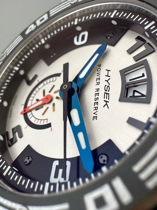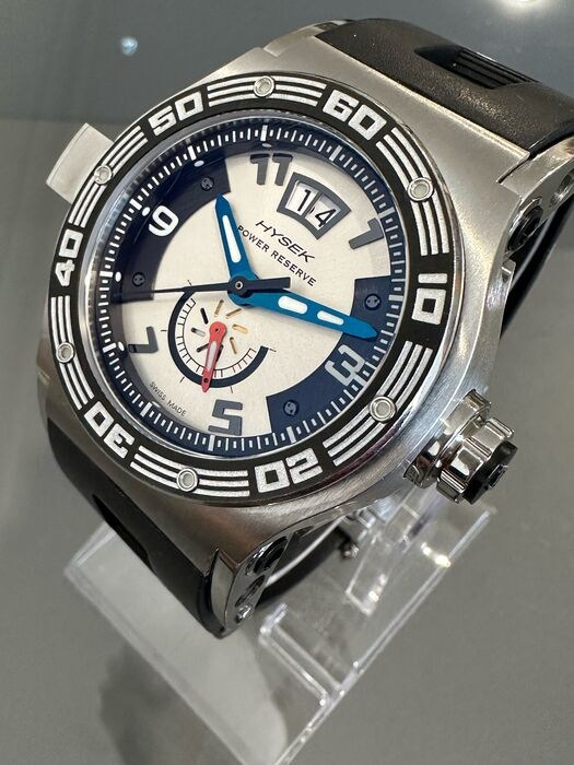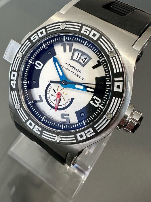 Wijzerplaat: zilver, zwart, gesigneerd met Hysek Power Reserve
