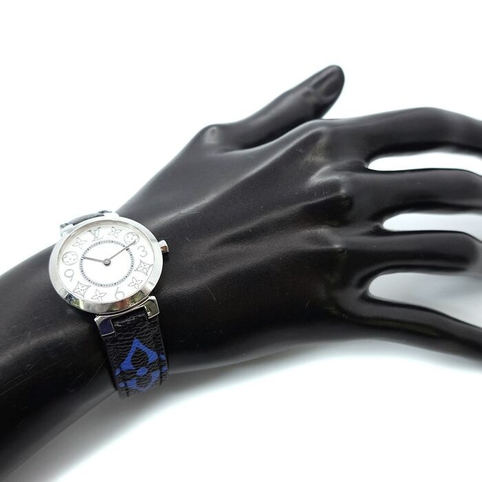 Titel: LOUIS VUITTON Tambour Monogram Q12MGH zilveren wijzerplaat dameshorloge 90179502