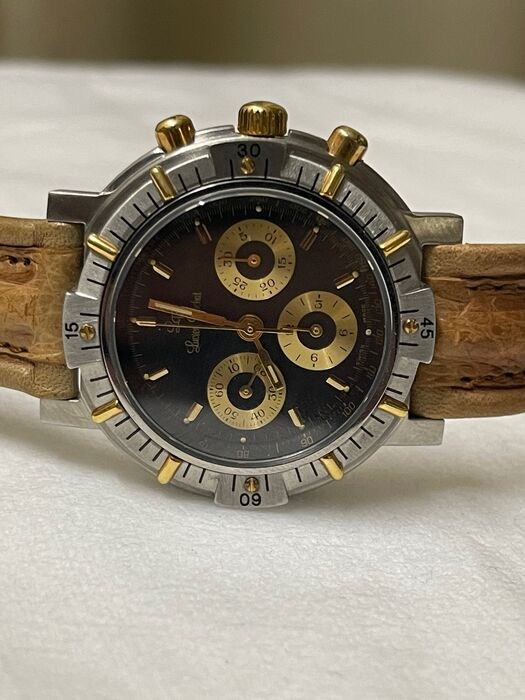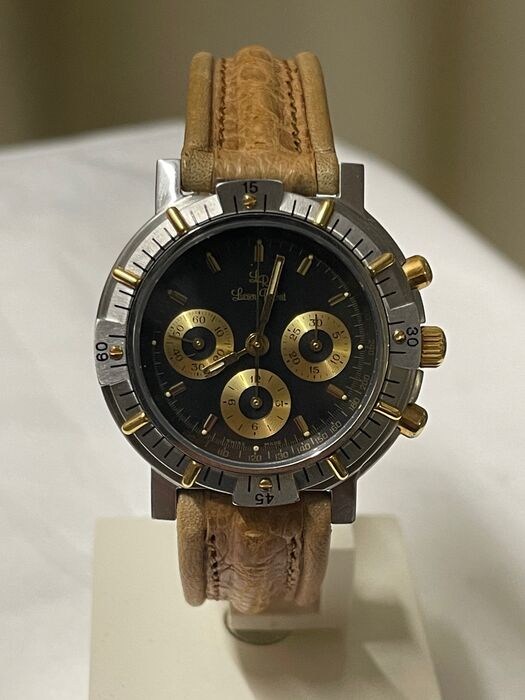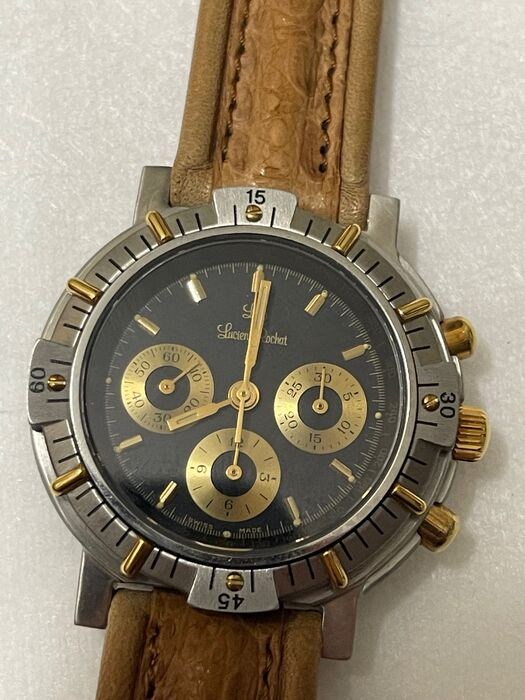 Te koop, uit mijn privécollectie, een prachtig exemplaar van Lucien Rochat met een kast van 40 mm inclusief kroon waarop het prestigieuze mechanische uurwerk LEMANIA 1873 met handmatige opwinding is gemonteerd.Het horloge heeft een totaal gewicht van 72,12 g en een totale lengte van 23 cm. De wijzerplaat is zwart en de wijzers zijn goudkleurig. De bezel is gemengd staal/goud en mono directioneel. Het uurwerk is in werkende staat, nooit onderhouden, nooit getest op waterdichtheid. Het wordt verkocht zonder doos en zonder enige garantie. LET OP: de band is van origineel jaren 80 beige leer, hierdoor is er geen garantie dat het leer een lange levensduur heeft. Originele stalen gesp met LR initialen. Bekijk de afbeeldingen goed alvorens te bieden, deze maken integraal deel uit van de omschrijving. U ontvangt niets anders. Het artikel wordt verzonden door een DHL Express-koerier in een goed verpakt/beschermd pakket met tracking, indien nodig met een generieke doos. Eventuele extra kosten voor aankopen buiten de EU, zoals douane, belastingen, diverse kosten, etc. zijn volledig voor rekening van de koper aangezien deze niet van mij afhankelijk zijn.