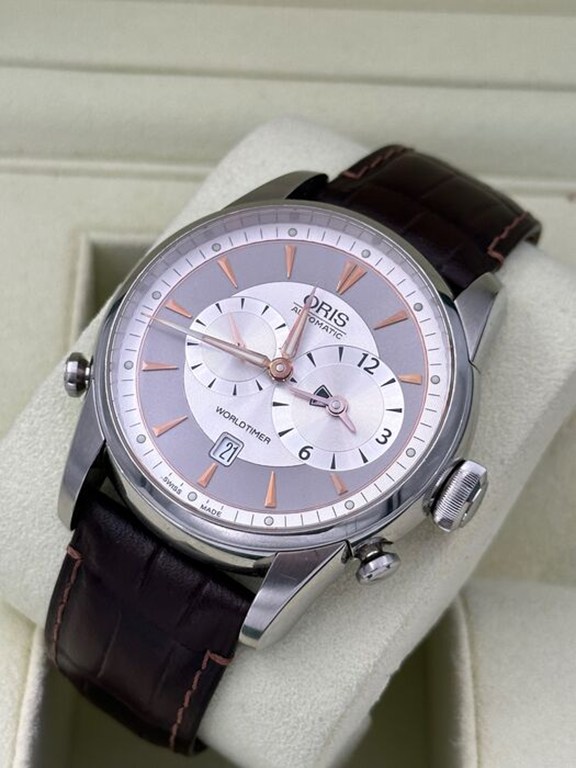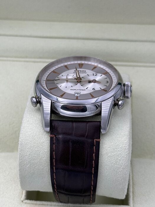 Een klassiek herenhorloge van Oris, model Worldtimer, referentienummer 7581 (690 7581 40 51 LS)