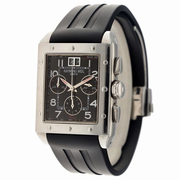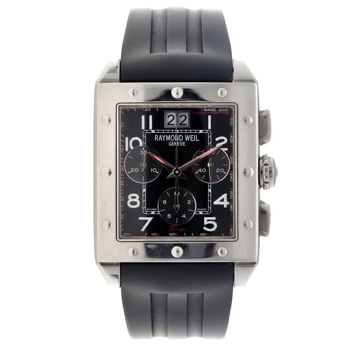Stijlvol Raymond Weil Tango herenhorloge met chronograaf en datum aanduiding.