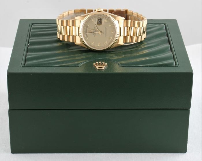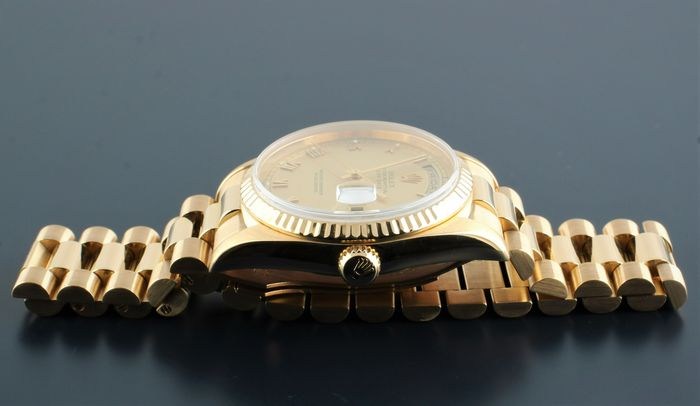 De Day-Date is een van de modellen van Rolex die alleen is gemaakt van massief 18k geelgoud, 18k witgoud, 18k everosegoud (Rolex's versie van 18k roségoud) en platina.