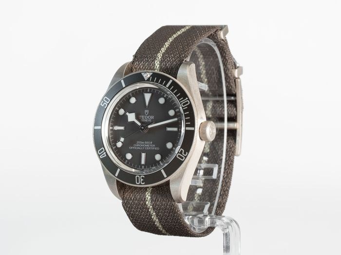 Kast: 39 mm kast - 925 zilveren kast, volledig geborsteld - unidirectionele draaibare lunette met geanodiseerd aluminium inzetstuk - saffierglas met antireflectiecoating - geschroefde kroon - open achterdeksel - 200 m waterbestendig