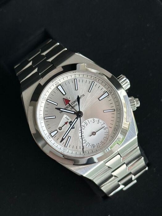 Vacheron Constantin overzeese dubbele tijd zilveren wijzerplaat