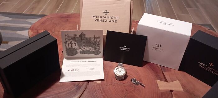 Horloge volledig gebouwd in 316 L staal, ontspiegeld saffierglas, jubileumarmband, sub 200 m. , Dubbele vouwsluiting, tritium indexen, diameter kast exclusief kroon 41 mm. Geschroefde kroon, gelimiteerde serie gewijd aan Watch en Christal, die het een horloge van zeer hoge kwaliteit vonden. Automatisch mechanisch uurwerk Cal MV 145. Bandbreedte 22 mm die naar behoefte kan worden verlengd of ingekort, omdat het is uitgerust met extra schakels. Absoluut onbereikbaar stuk gebouwd in een zeer beperkte serie van slechts 200 stuks. Volledige set met nog werkende garantie. Doos, omdoos, certificaat van oorsprong.