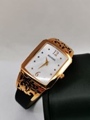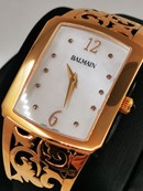 Parelmoer wijzerplaat. Gepolijste roestvrijstalen wijzers en 10 diamanten indexen.