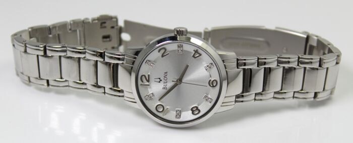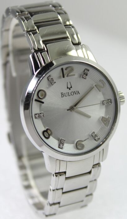 Dit is een prachtig luxe Bulova diamanten horloge dat in zeer goede staat verkeert. Het beschikt over met de hand gezette diamanten in de wijzerplaat. Prachtige zilveren wijzerplaat en Bulova roestvrijstalen band