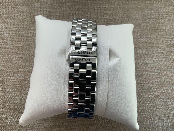Het elegante ontwerp wordt benadrukt door een witte wijzerplaat met een guilloché-patroon.