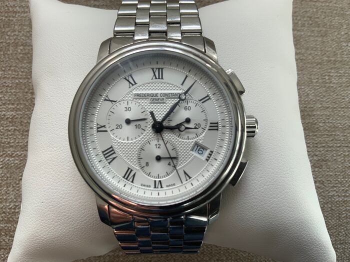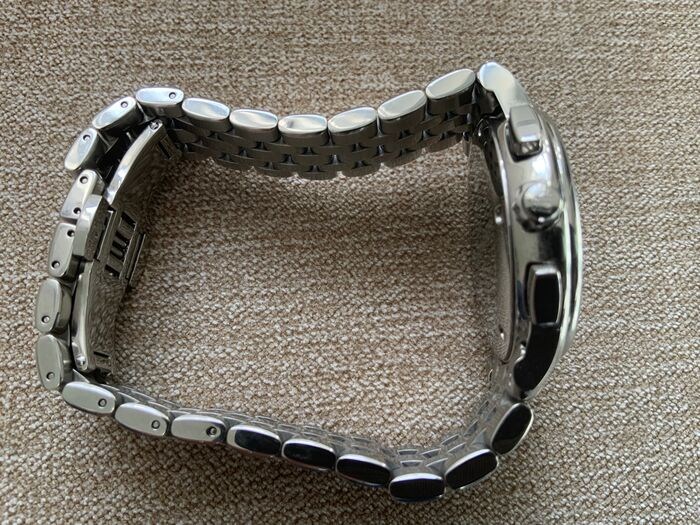 Functies op het horloge zijn onder meer een chronograaf en een datumvenster.