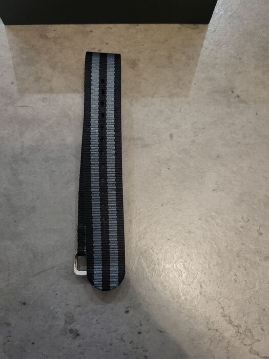 Band: zwart leer en stof