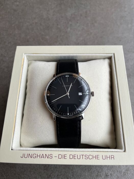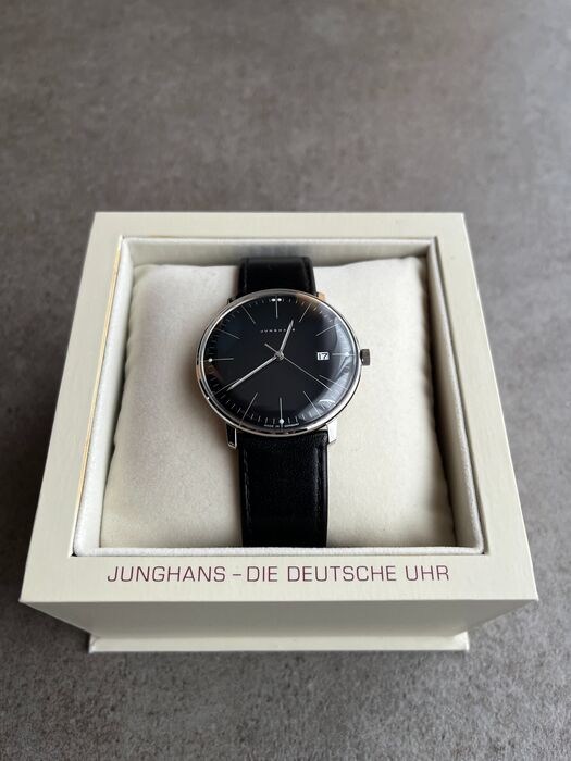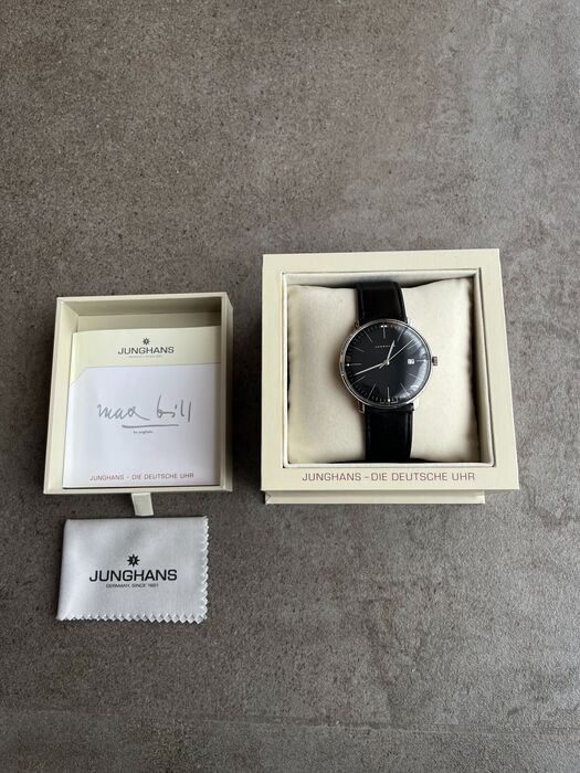 Zo goed als nieuw origineel Junghans Max Bill quartz horloge in de kleur zwart: