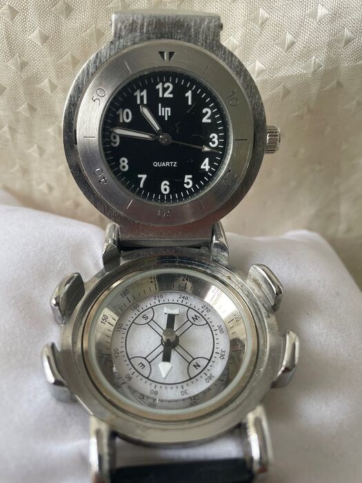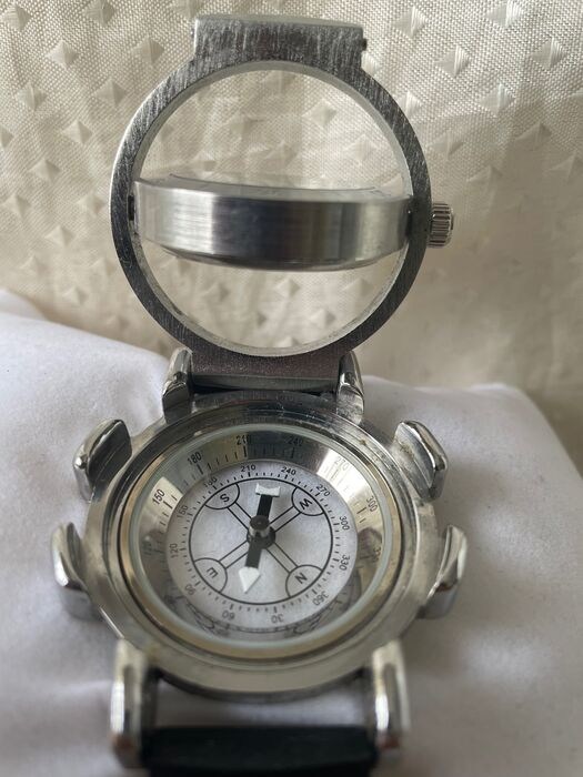 Kast: in staal met stalen achterdeksel, gegradueerde bezel, kantelbaar + onafhankelijk kompas
