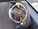 Stalen kast en 18kt vergulde pinnen op 12 en 6 uur, diameter 36 mm. kroon inbegrepen