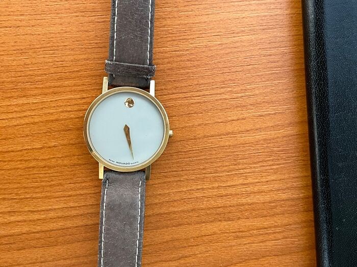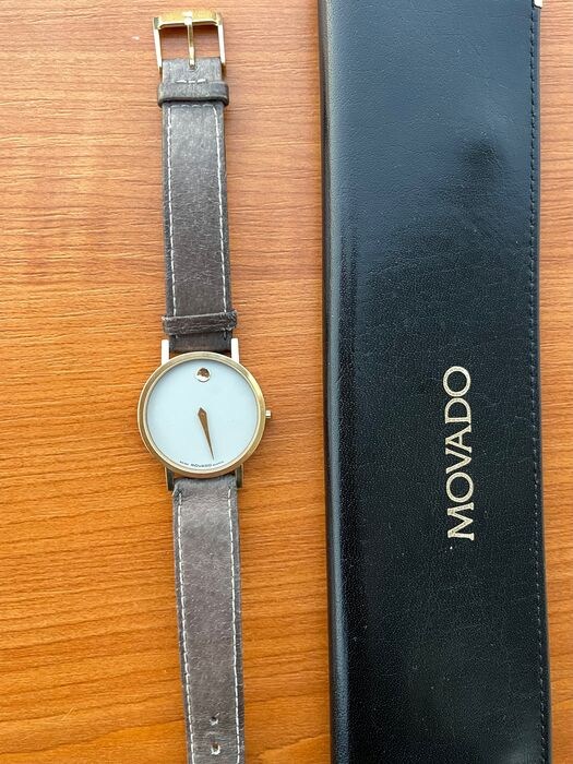 het horloge wordt geleverd met een originele movado transport- en opbergkoffer