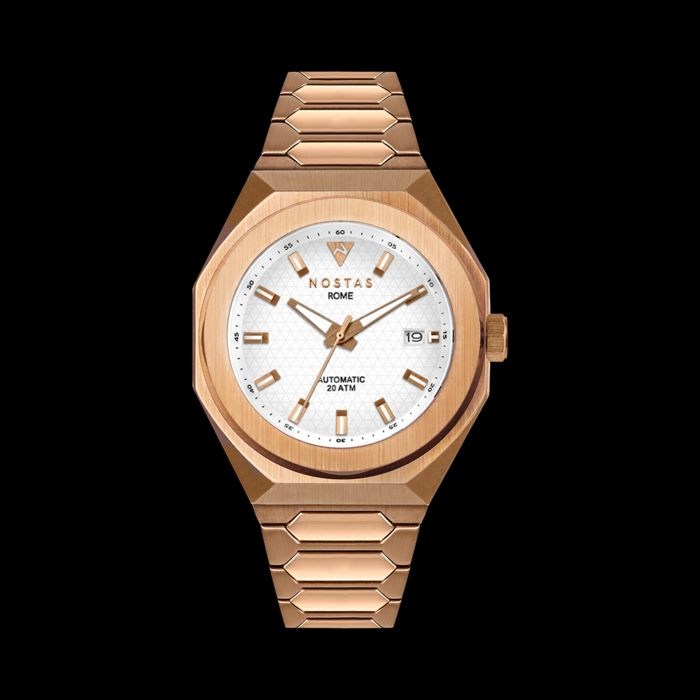 Nostas Monarchia 43 mm Wit Rose Goud automaat is een gelimiteerde oplage van 40 stuks
