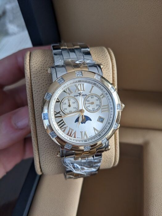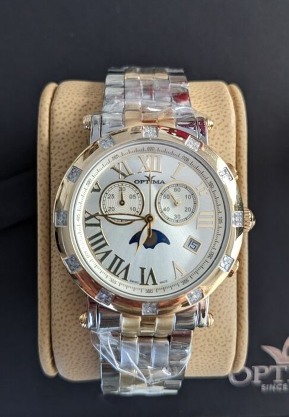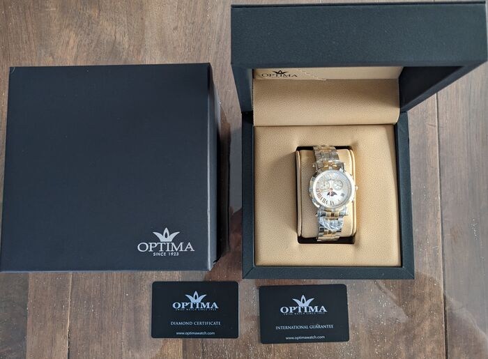 Diamant: bezel bezet met 48 echte diamanten (0,34 karaat). De zuiverheid van diamanten is SI-kwaliteit.