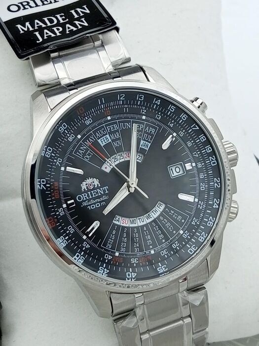 Dit horloge is op de achterkant en bandbeschermers die nooit om de pols zijn gedragen. U zult de eerste zijn die de roterende binnenring van de Orient Multi Year Calendar gebruikt. De vergrendelde top 100 meter waterdicht werkt perfect. Controleer de foto's. Houd er rekening mee dat de douane van het land de verantwoordelijkheid van de koper is.