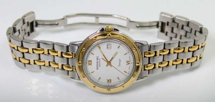 Dit horloge is gebruikt en in zeer goede staat. Het heeft een prachtige roestvrijstalen kast, mineraal glas, witte wijzerplaat, het heeft de originele gebruikte Raymond Weil roestvrijstalen band