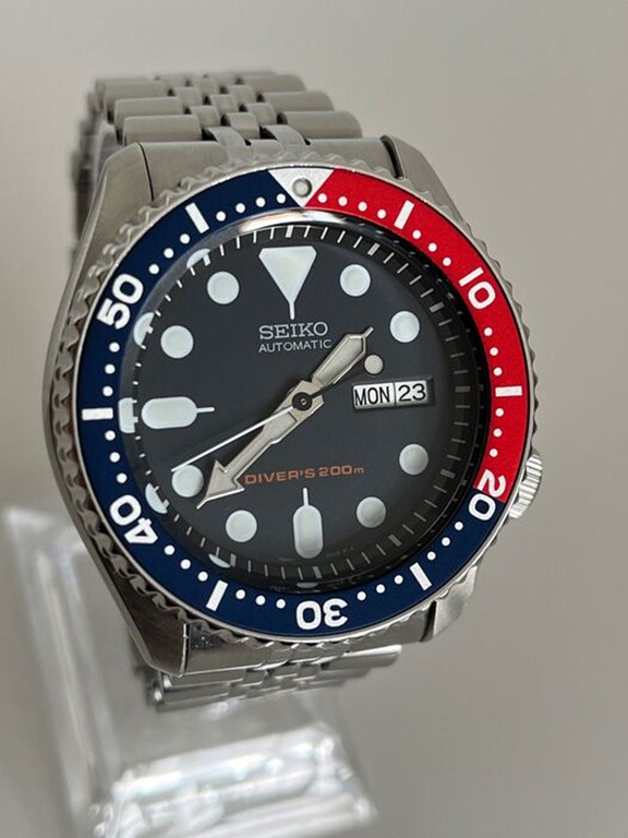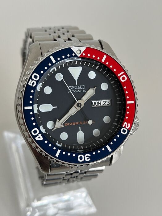 Seiko SKX009 met de kenmerkende Pepsi kleurstelling. De populaire voorganger van de Seiko 5 Sports serie. Een iconisch duikhorloge met zeer betrouwbaar automatisch uurwerk. Dit horloge wordt al jaren niet meer geproduceerd en zal hierdoor alleen maar meer gewild worden.