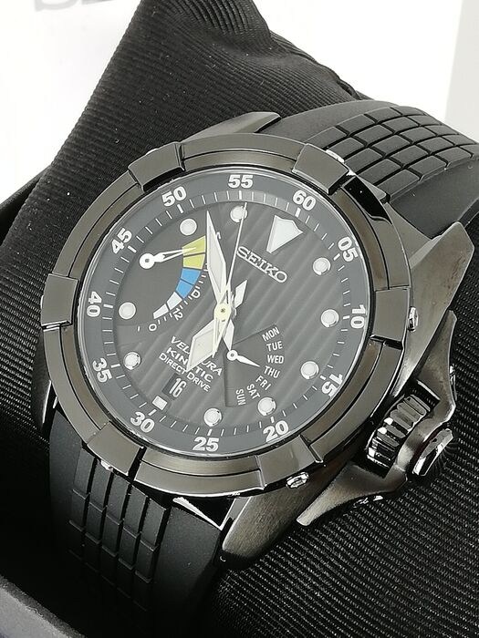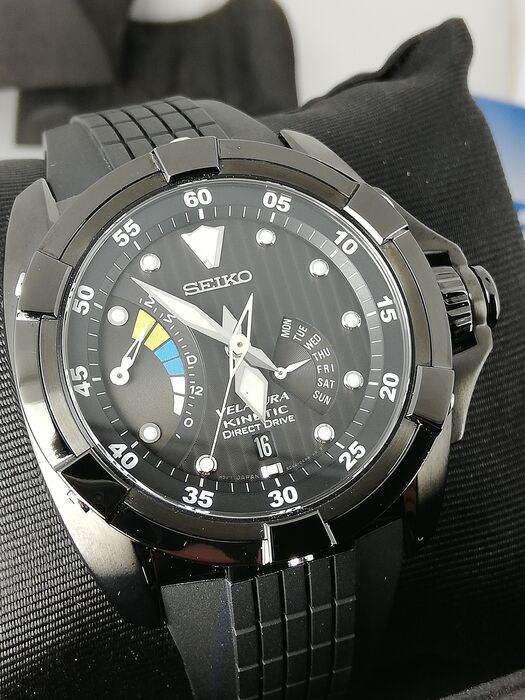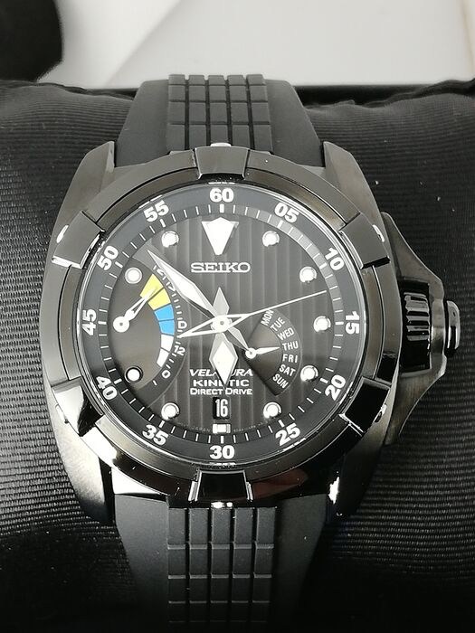 Seiko Velatura Kinetic Direct Drive zwarte wijzerplaat rubberen band herenhorloge SRH013