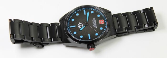 Dit hoogwaardige Zwitserse herenpolshorloge is gloednieuw. Het wordt geleverd met een Zwitserse militaire garantie van 3 jaar. Het wordt geleverd met Zwitserse militaire doos, garantie en tags.