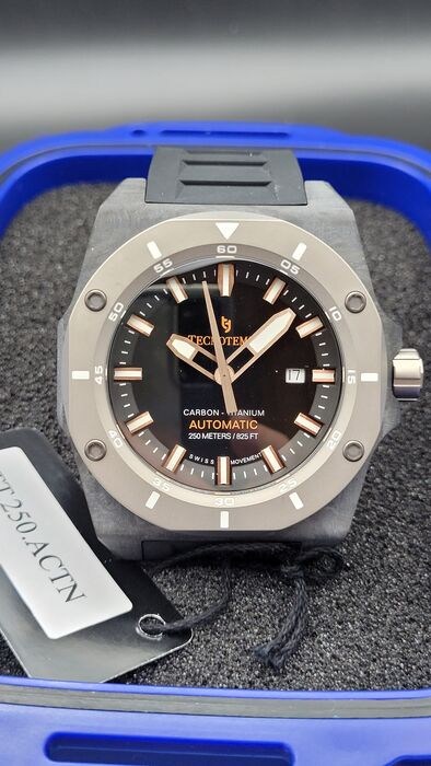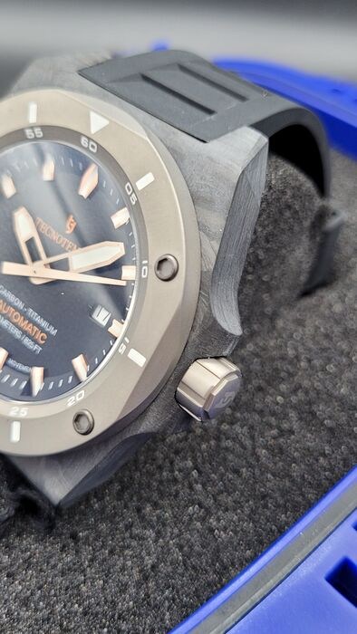 Tecnotempo is een Italiaans merk, elk model wordt geproduceerd in een gelimiteerde en genummerde oplage, dus elk horloge is uniek. In deze veiling bieden we een meesterwerk van Tecnotempo in koolstof en titanium, gecombineerd met een Zwitsers kwaliteitsuurwerk van Selita.