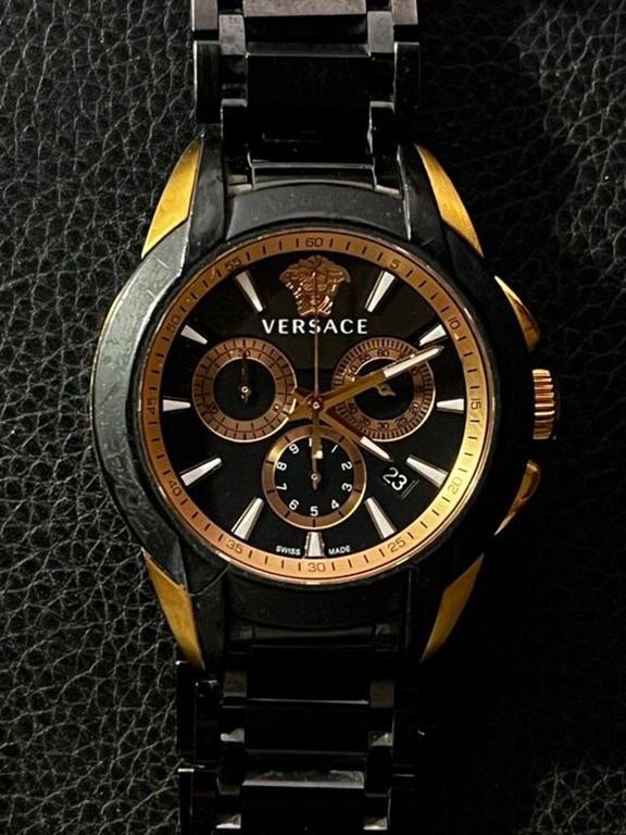Versace chronograaf quartz horloge PVD en verguld roestvrij staal met rubber 42