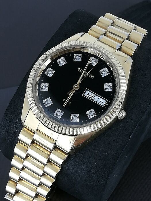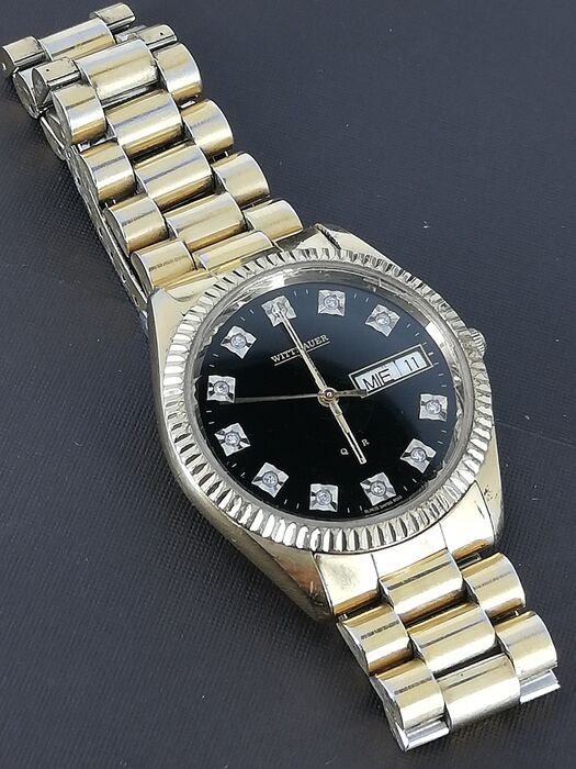 Authentiek Zwitsers WITTNAUER klassiek quartz dag-datum horloge.
