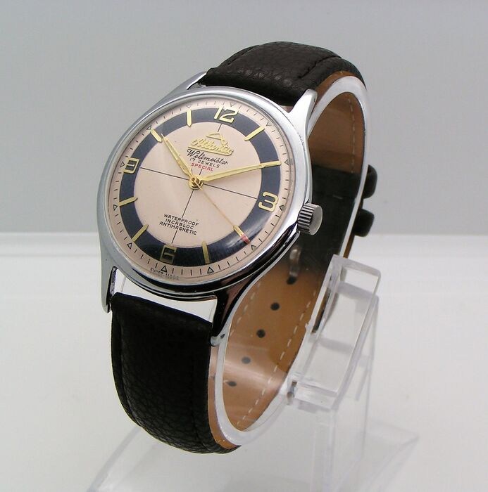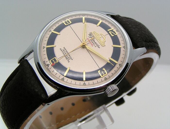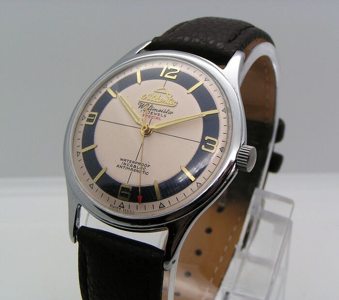 - WIJZERPLAAT: wit met blauw vergulde ring, gouden cijfers en indexen, gesigneerd met het ATLANTIC - SUPER logo - na professionele renovatie.