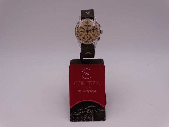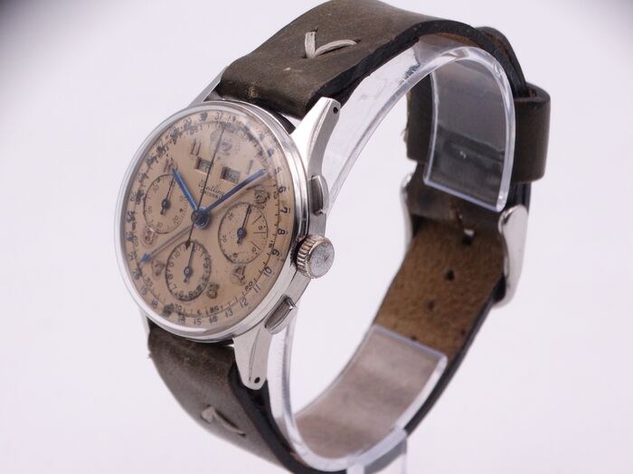 Uurwerk: Valjoux 72C handopwinder, met uren, minuten en seconden. Chronograaf. Datum, dag en maand.