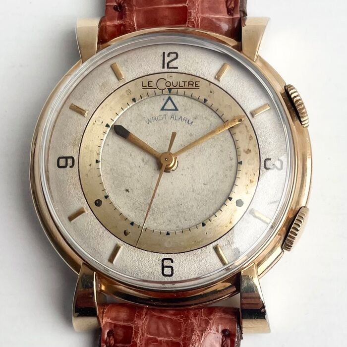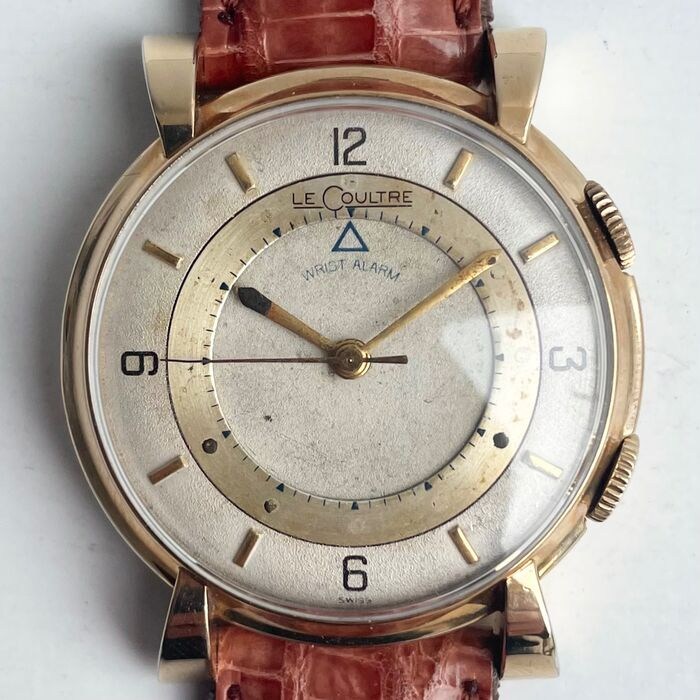 Twee kronen aan de rechterkant van de kast worden gebruikt om het alarm op 2 uur en het horloge op 4 uur te bedienen.