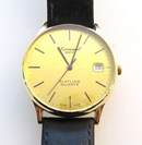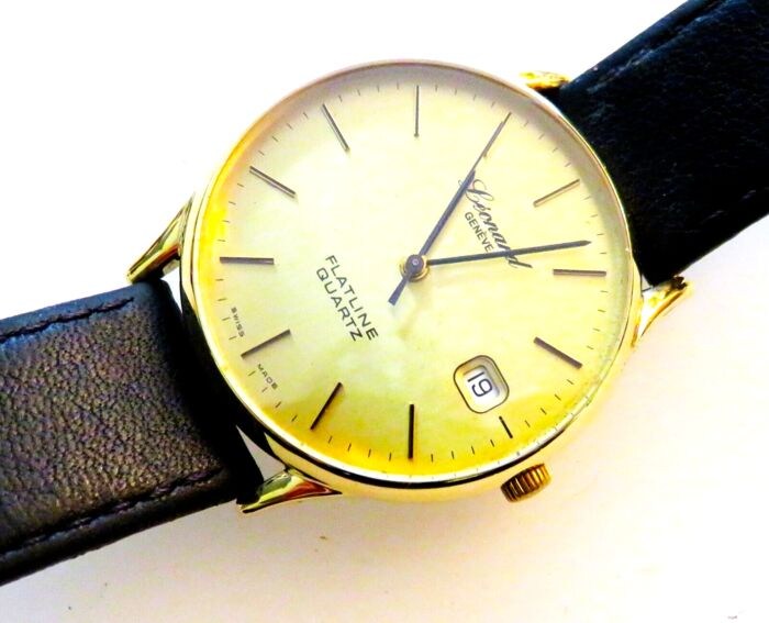 Elegant plat vintage 585 gouden Leonard Flatline quartz herenhorloge