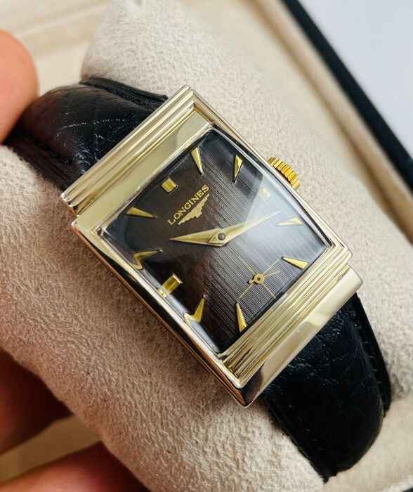 - Opmerking: LONGINES Art Deco-wijzerplaat (bruin) vintage herenpolshorloge