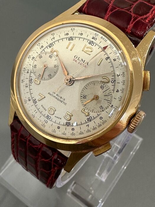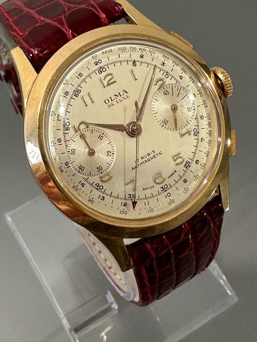 Vintage Olma Chronograaf 18K Goud polshorloge: