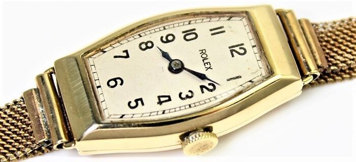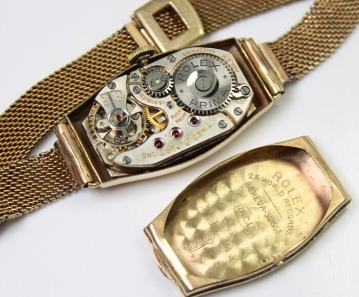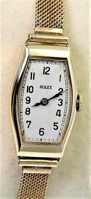 Dit is een prachtig 9kt gouden vintage dameshorloge in zeer goede staat. Het heeft een mooi, schoon Swiss made Rolex Prima handopwind uurwerk. Het heeft een aftermarket vergulde armbandband.