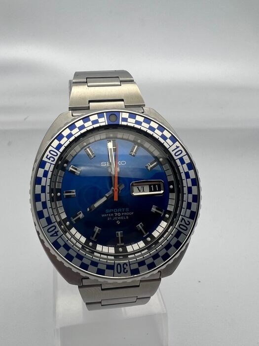- Kast & armband: roestvrij staal - wijzerplaat: blauw, in "uitstekende" staat. Vlekkeloos. -Seiko produceerde eind jaren '60 en '70 geen tekort aan sportduikers, maar geen daarvan was zo gedenkwaardig en gewild als degenen die de "Rally"-onderscheiding dragen. Ze zijn zo genoemd naar hun geruite bezels en wijzerplaten en vormen een direct herkenbare combinatie van kleur en cool.