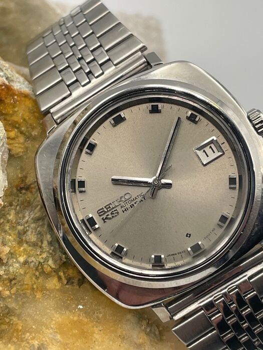 Seiko KS ultra zeldzame jumbo kast met zalmkleurige wijzerplaat, jaren 70