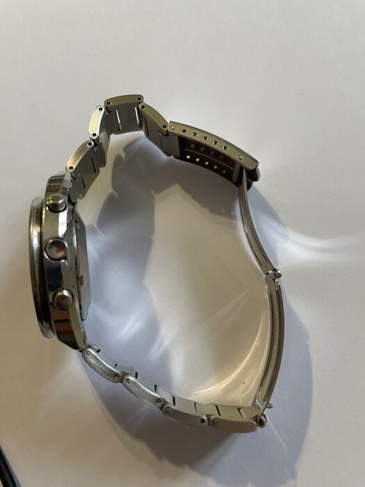 Horloge, werkend in al zijn functies. De chronograaf is delicaat, historisch defect van het model, hij werkt maar loopt bij ijverig gebruik vast.