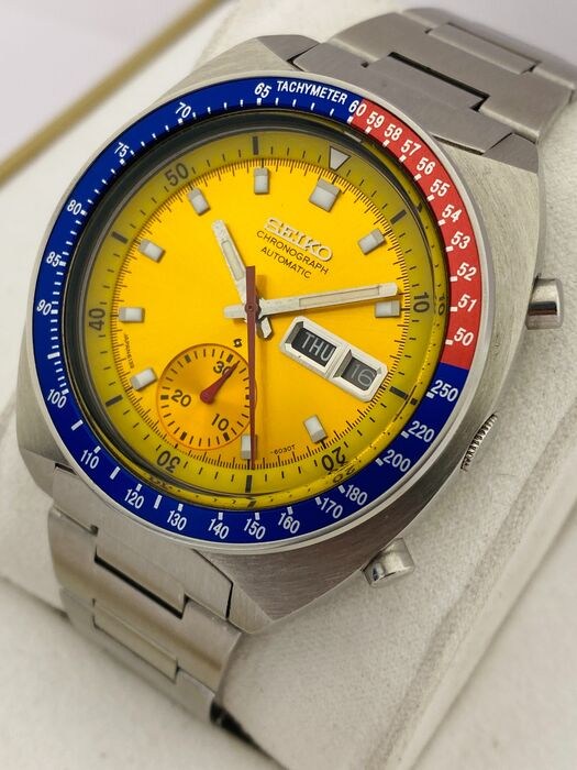 Seiko - Pogue Pepsi automatische chronograaf oranje wijzerplaat - dag-datum - 6139-6002