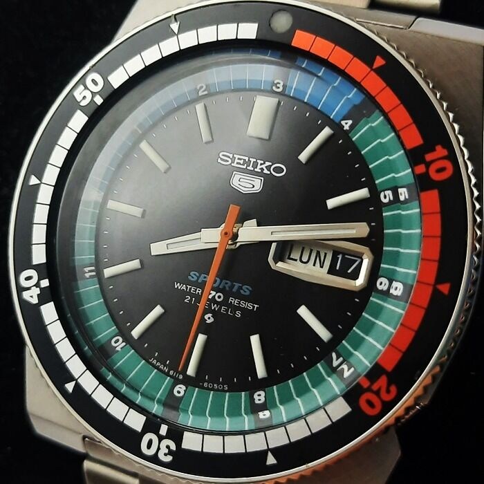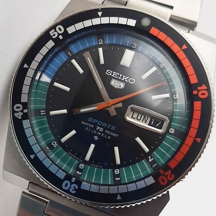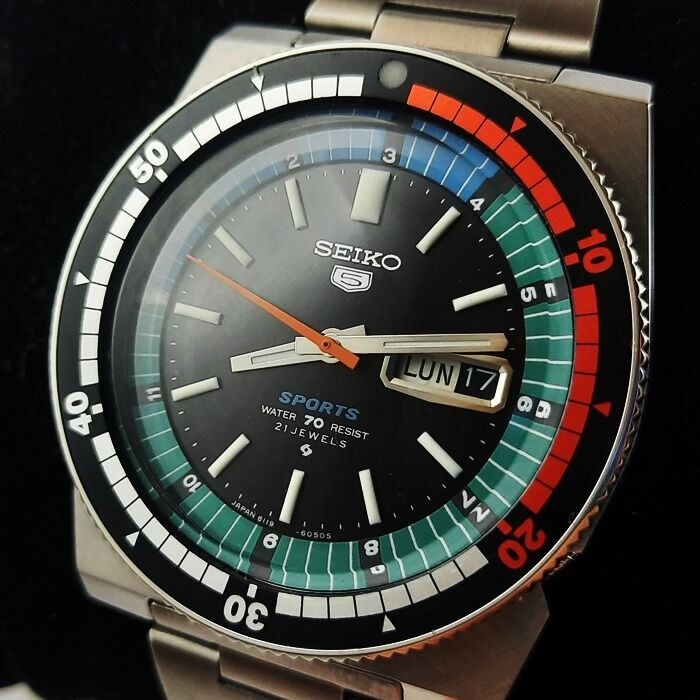 Vintage en zeldzame Seiko Regatta Automatic Rally Sport - 6119-6053 Automatisch herenhorloge uit de jaren 70. Het heeft een prachtige saxe zwarte wijzerplaat en dubbele bezel