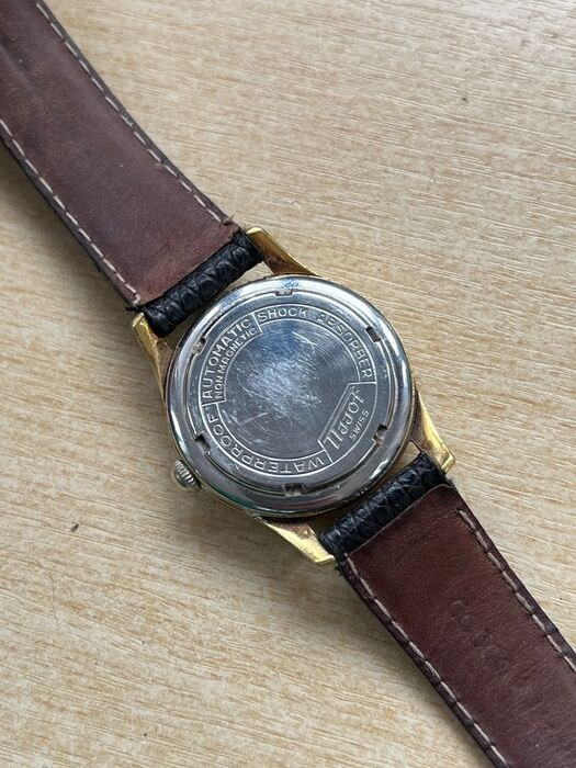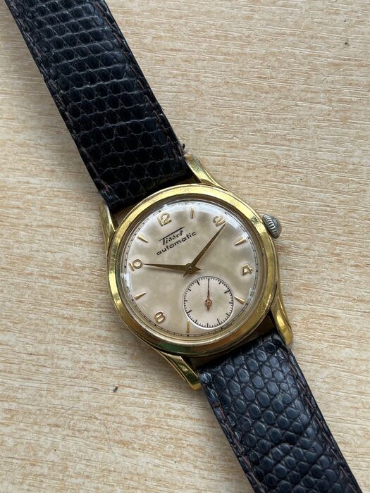 Schitterende vergulde Tissot 33mm exclusief kroon. Bumper automatisch uurwerk dat perfect werkt. De wijzerplaat heeft door de jaren heen een prachtige kleur gekregen. Leren band in goede staat.