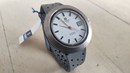 Dit model is lichtgrijs met een stalen kroon en een wit scherm. De datum is om 3 uur. originele kunststof band.