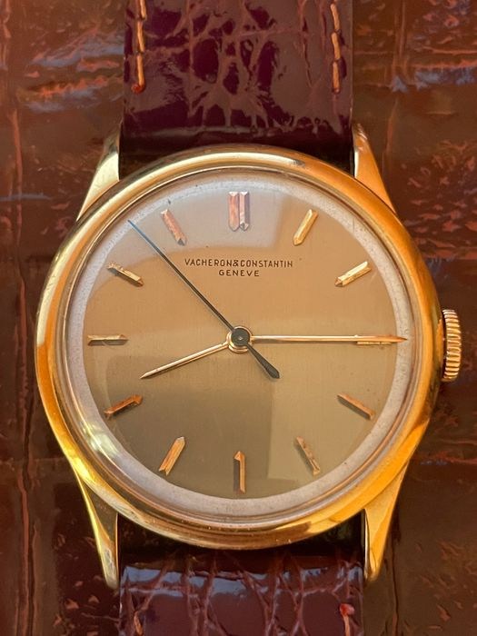 Vacheron constantin "calatrava" 34mm rosé goud geen doos of papieren. Hedendaagse klok. Originele plexiglas zeer zeldzame originele onuitwisbare wijzerplaat (niet herdrukt). Niet originele weerhaak Niet originele band
