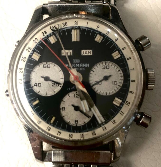 Horloge in uitstekende staat met normale gebruikssporen gezien de tijd, uitstekend Valjoux 72c uurwerk hetzelfde als de Rolex Killy! Afmeting 38 mm en stalen kast met jubileumband. Verzekerde verzending.