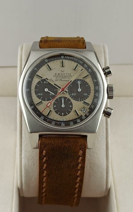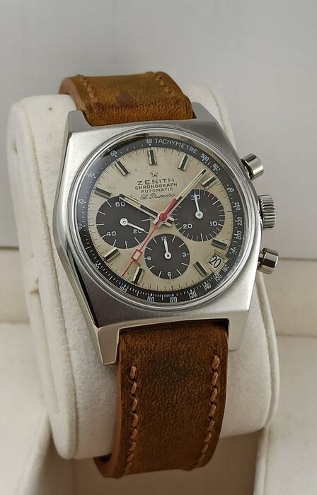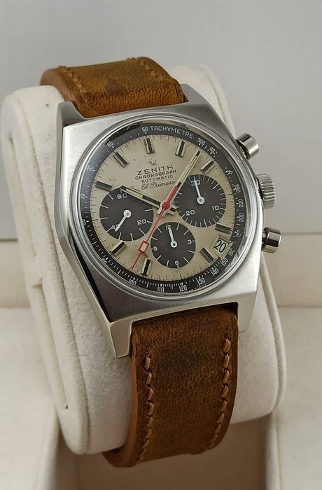 Zenith horloge, model El Primero, vintage, met tropische Panda wijzerplaat.